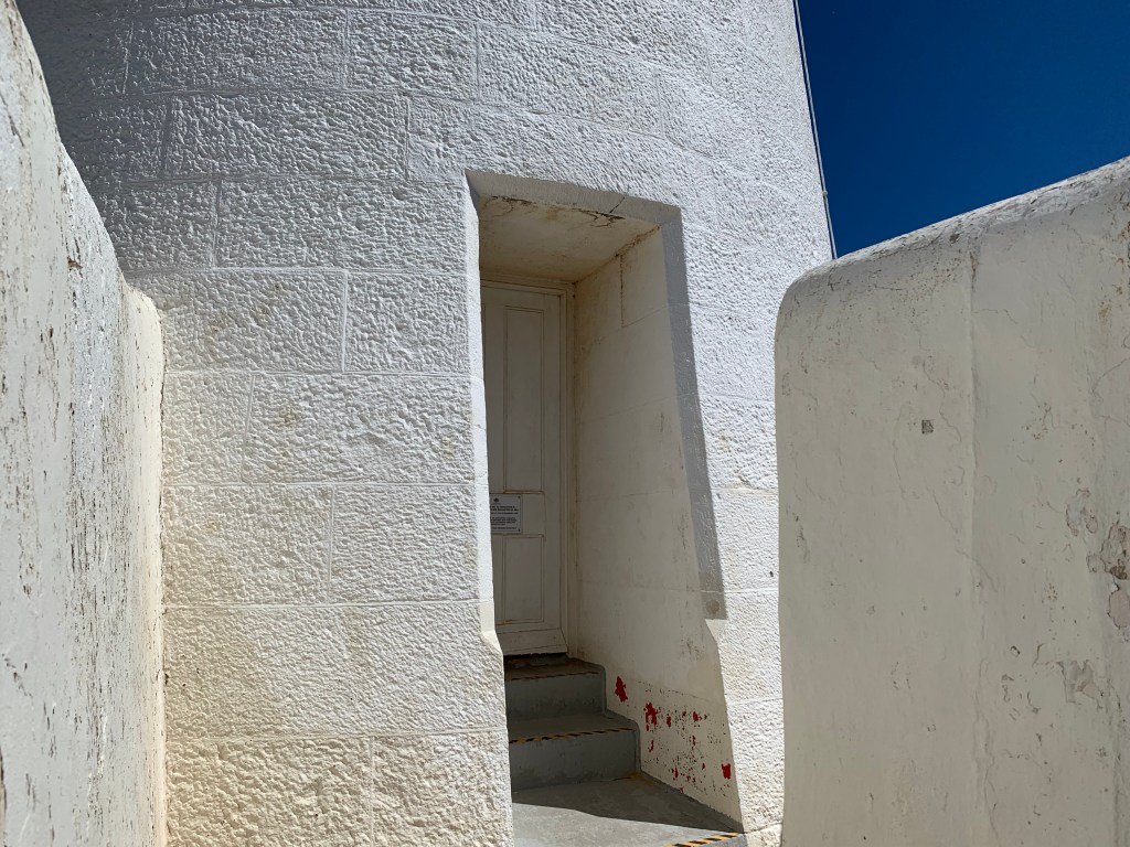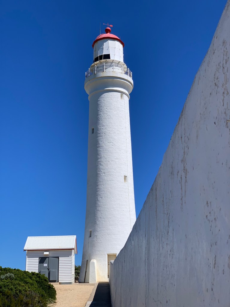It was first lit in 1884 and is still operational today. I understand why it is needed – the Southern Ocean violently smashes the cliffs on this cape. In the past, unsuspecting ships arriving from Europe regularly came to grief here. It’s called the Shipwreck Coast, and the weather is notoriously unpredictable. The winds are so intense a wall protects the small door at the lighthouse’s base.