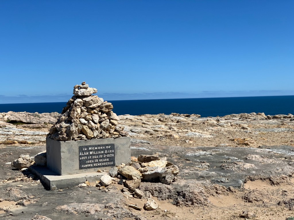 I walk along the cliff and come across a solitary cairn erected in memory of Alan William Barr, lost at sea in 1970. No more information is given, just this lonely memorial in this desolate place.